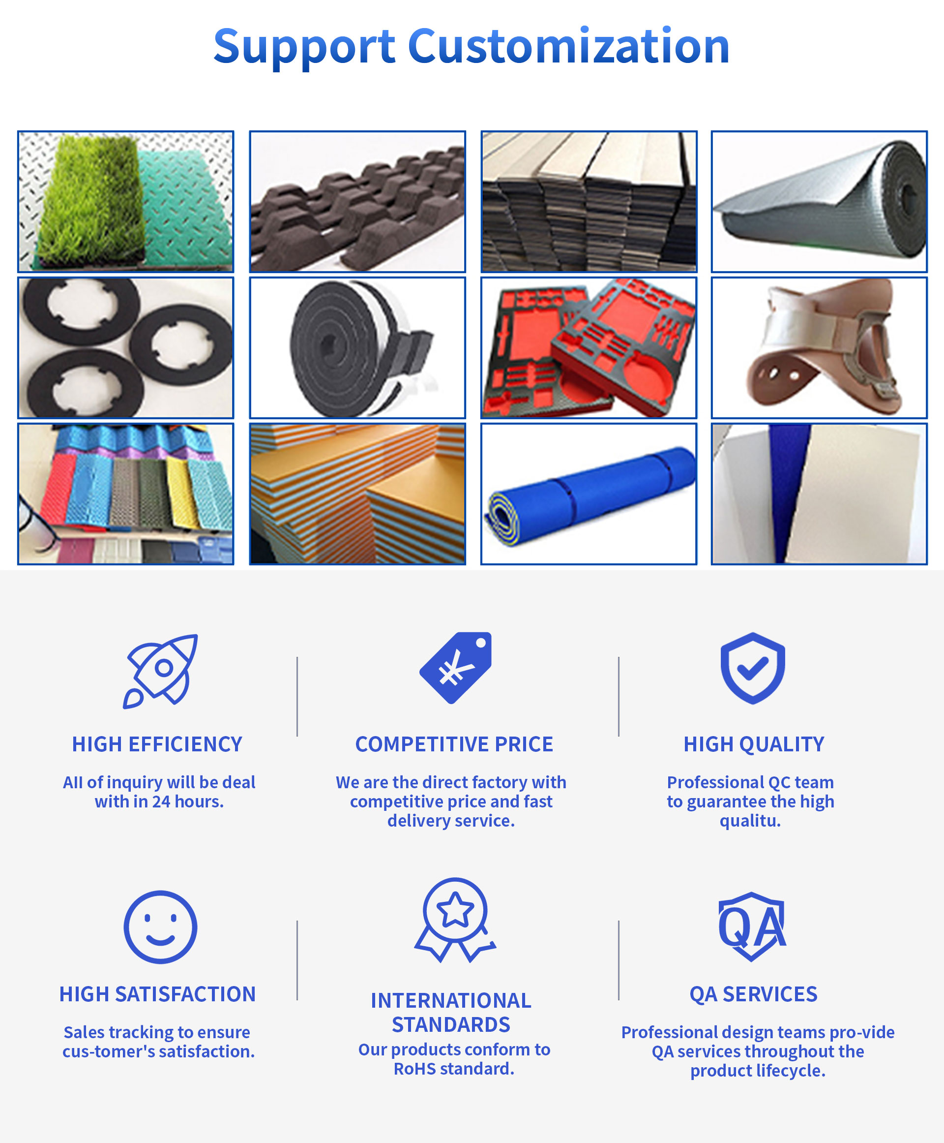 - Attrezzature per il fitness: il foglio di schiuma EVA ad alta resilienza può essere utilizzato come tappetini per attrezzature per il fitness, come tappetini per yoga, tappetini per fitness, fornendo supporto e protezione confortevoli.